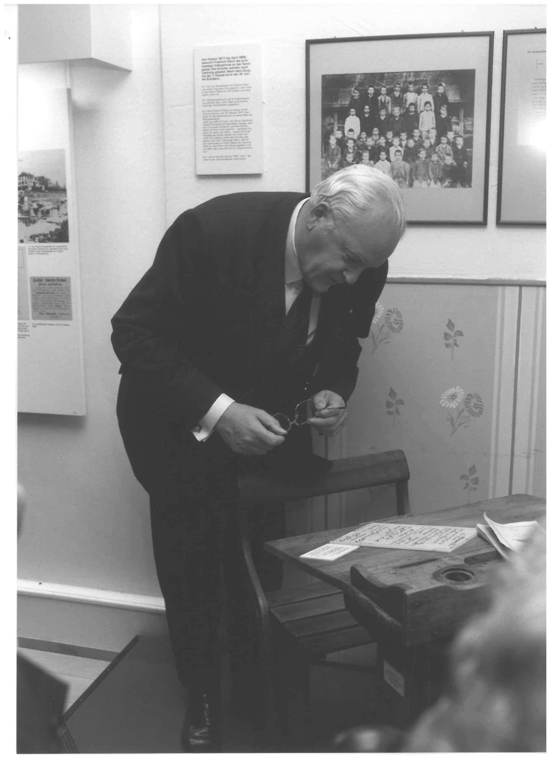 - Der ehemalige Bundeskanzler Willy Brandt beim Eintrag in das Gästebuch, 1990 – SRFEG