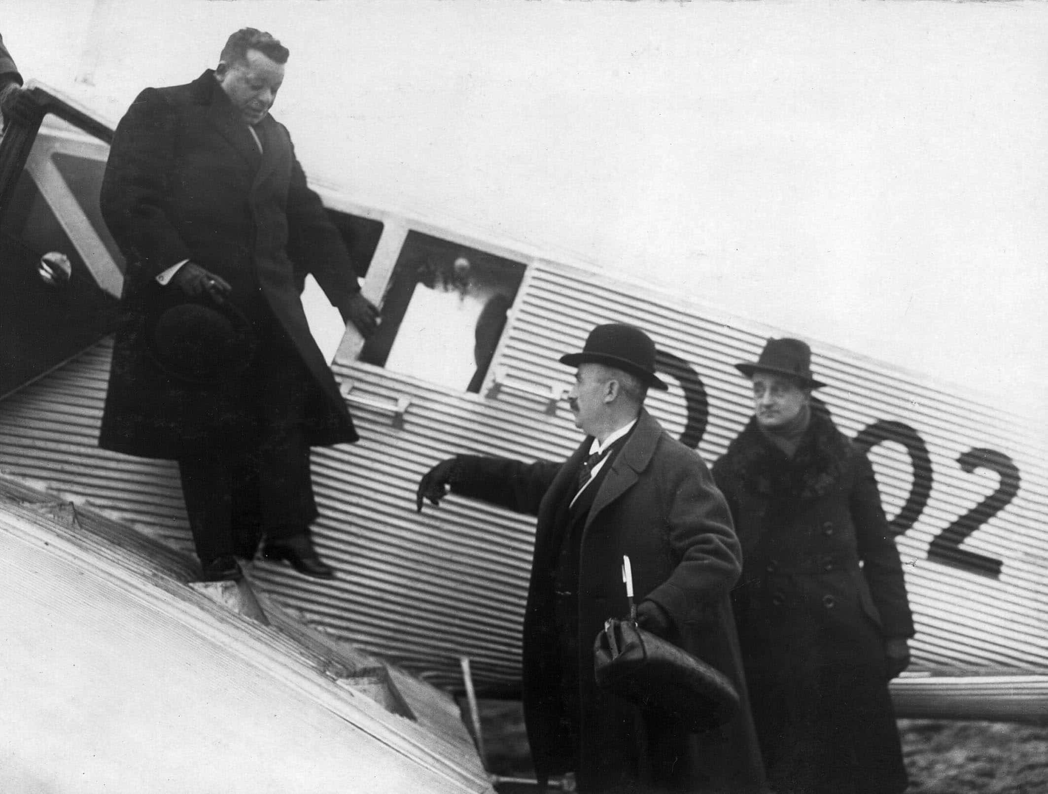 - Friedrich Ebert beim Ausstieg aus einer Junker F13 in Leipzig-Mockau – Archiv der sozialen Demokratie (6/FOTA005593)