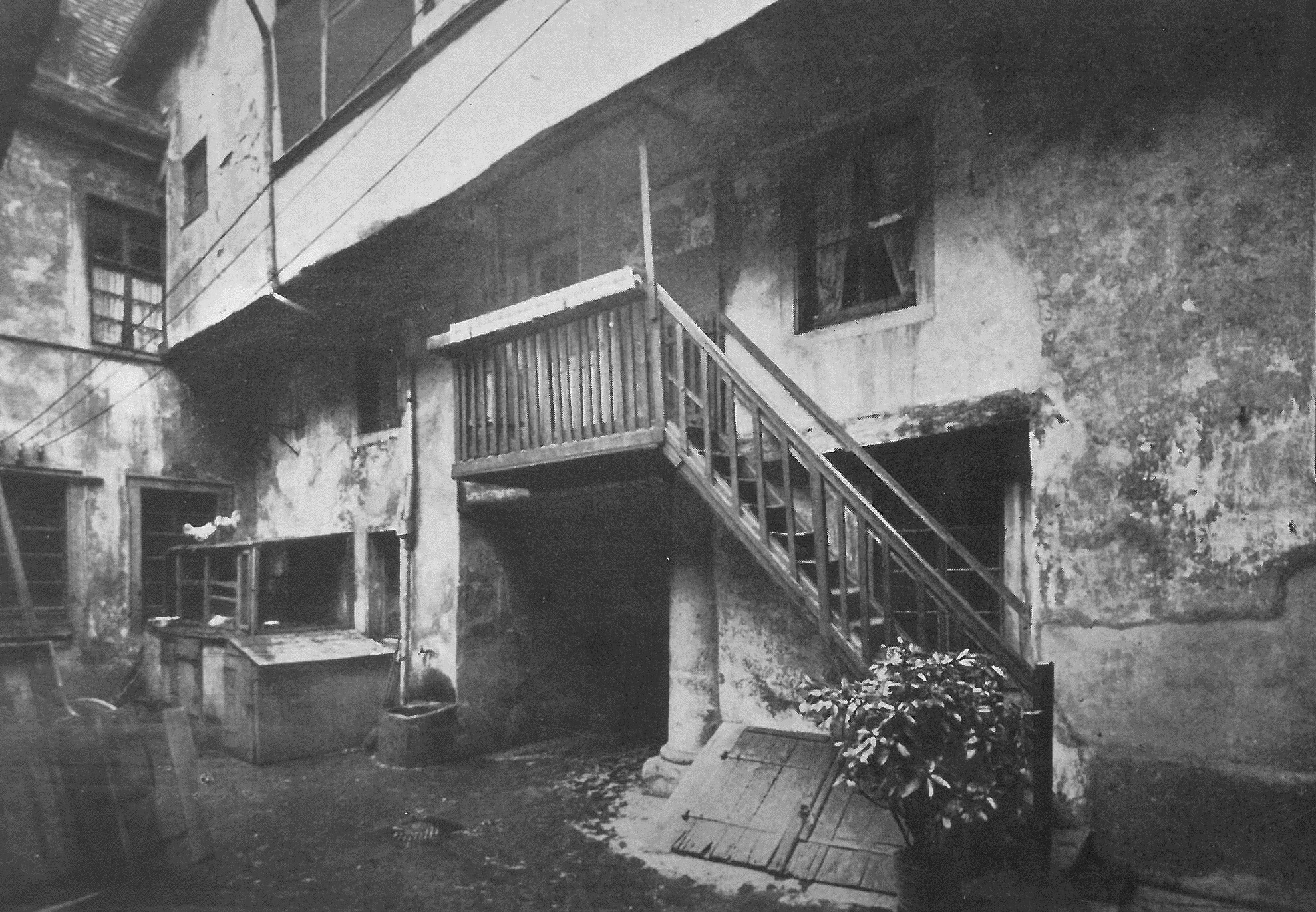 - Innenhof mit Blick auf die Treppe, die zur Geburtswohnung führt, um 1919 – SRFEG (Foto: Robert Herbst, Heidelberg)