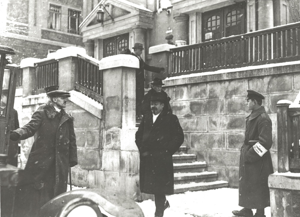 - Friedrich Ebert und Philipp Scheidemann beim Verlassen des Volkshauses in Weimar, Februar 1919 – SRFEG (Foto: Alfred Frankl, Berlin-Schöneberg)